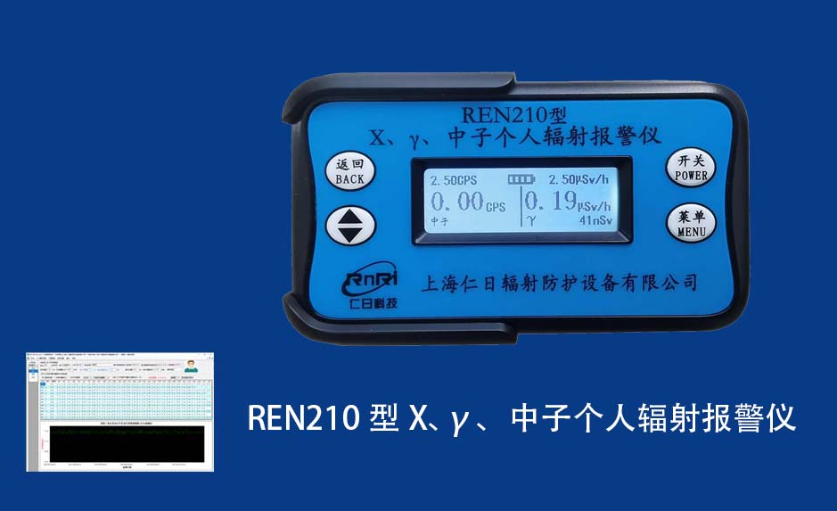 REN210型X、γ、中子個人輻射報警儀內置SiPM和鋰玻璃晶體組成中子探測器儀器,采用反照率方式探測中子射線,同時也能探測X、γ射線。因此它可同事監(jiān)檢測X、γ、中子三種射線。能顯示工作場所的劑量當量率和累積劑量,更換電池時,日期及累積數據能永久保存。可選配RenRiPersonal個人劑量管理軟件,該軟件可存儲多個人的歷史數據,能記錄日累積、月累積、年累積、輻照時長、計算平均劑量率、扣除或不扣除本底輻射,且以文字和圖譜的方式展現數據。廣泛應用于環(huán)保、化工、水泥、煤礦、土木工程、石油、醫(yī)院、疾控、進出口商檢、核電、加速器、機場、中子源庫和其他安檢、邊境控制海關檢測等領域中的工作人員進行個人安全防護監(jiān)測及放射性提示。